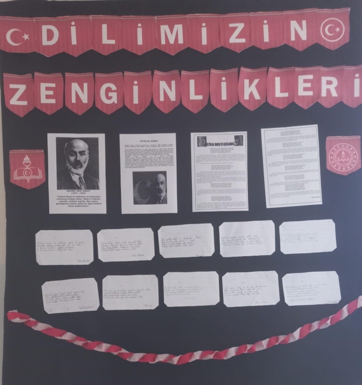 Dilimizin Zenginlikleri Projesi kapsamında okulumuzda Mehmet Akif Ersoy temalı afiş çalışmaları yapıldı. Öğrencilerimizin yaptıkları afişler okul panomuzda sergilendi. Çalışmaya öncülük eden Müdür Yardımcısı Fadıl YALÇİN' e ve Öğretmenimiz Yasin KISAYOL' a teşekkür eder, değerli öğrencilerimize başarılar dileriz.